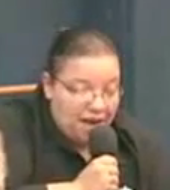 Community activist and parent Bill Hargraves announced to Duffy and everyone else in the room that he never returned any of his numerous calls. Duffy had no answer for this, though I understand they were able to arrange a meeting in the next days. One of the Mott Hall people said they “have no idea of the space” for these schools yet. Annette Jimenez (above right) claimed that the Harlem Success Academy schools have already been approved. Duffy shook his head No.
