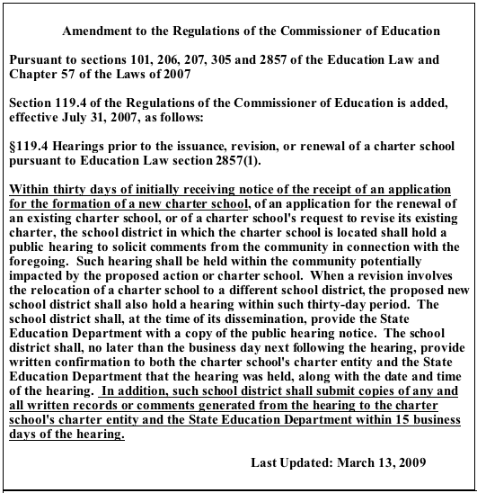 Here is what I found on the charter school hearing law (underline mine), and someone can correct me if I’m mistaken: