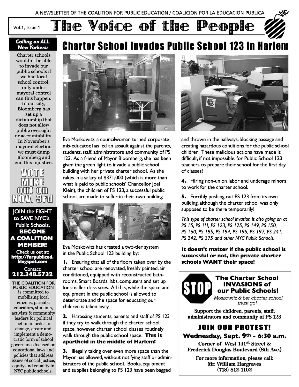 The Coalition for Public Education’s first post was on Aug. 6th, but we refer GEM readers to their more recent newsletter here.