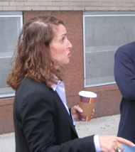 About ten PS 123 African-American teachers stood close by in solidarity during Wednesday’s protest, but did not join the picket line. The fact that the UFT and DOE had asked them not to shows a total lack of leadership and insensitivity in the face of these glaring, unjust and stressful conditions at PS 123. Mr. Michael McDuffy, of the DOE Office that approves charters, was present but would make no comment.