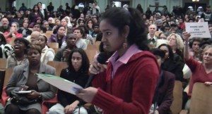 Jamaica High School has spoken and will continue to fight for sound and public education. The meeting that took place last night in Jamaica was just a formality carried by the DOE. They have no intentions of changing their minds about the closing of any schools. The DOE is doing what the MTA did with hearings all over the city, hundreds of people attended these meetings, they spoke loud and clear against the increases in fares, the cutting down of services, the layoff of transit workers. At the end they voted the way they wanted to vote all along.