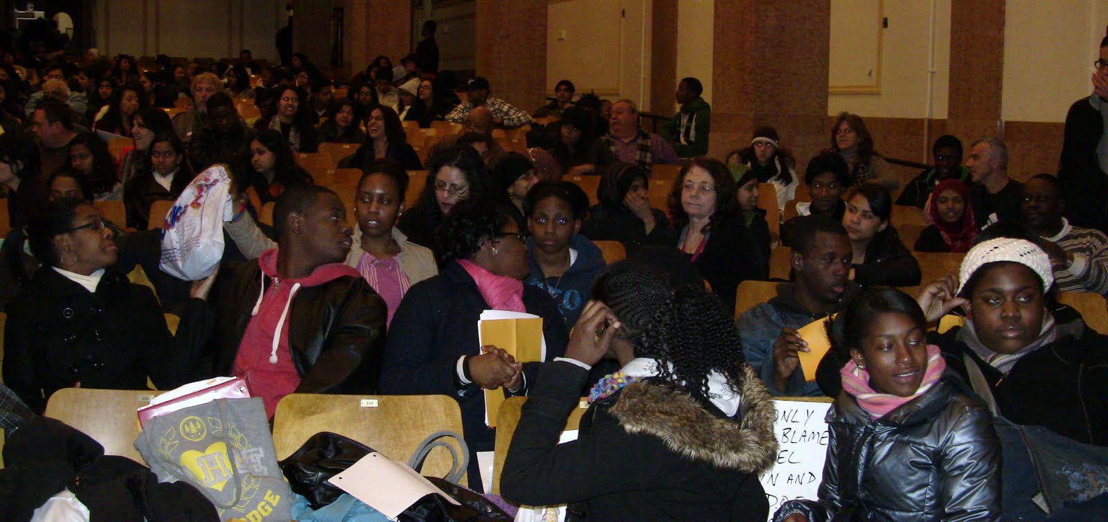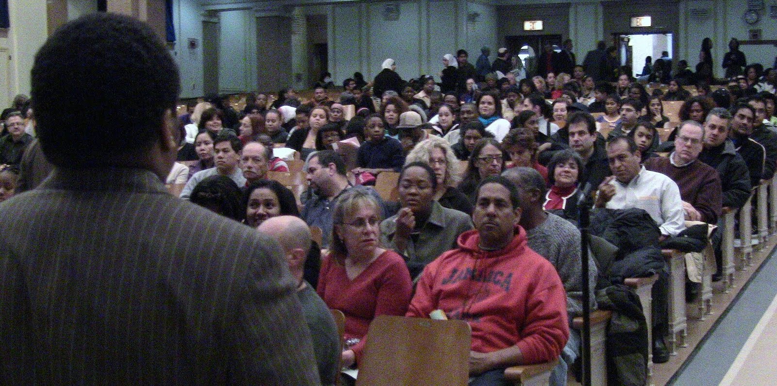 Now with the DOE, they are going to do the same thing unless we build a mass movement against it, already what took place in Maxwell HS and Jamaica HS is the beginning of this movement, we already have City Council Camran and Charles Barron supporting this struggle against the closings of public schools, and the UFT is waiting on the sidelines, if the movement grows they will jump in, we need the resources of every body, we must continue to put the pressure on who ever we can to support this struggle, of course the UFT should be taking more action. But this is not going to take place unless we have the people, community, students, teachers, administrators in the streets demanding justice . The hearings are carefully manipulated to allow people to release steam, but we should not be fool by them. We must continue to put the pressure on. Yesterday in Jamaica, the DOE reps wanted to shut down the people in the auditorium, put out their crap and go home quietly. BUT they had another thing coming, the speakers lined up along the aisles from the front to the back of the auditorium, as one speaker finished more students, parents, teachers, community members, came forth.Councilmen Camran, spoke very clearly against the closing of Jamaica HS, each contributing to expose the lies of the DOE. James Eterno gave a thorough speech about the lies of the DOE and the truth about JHS. All of the speakers added something to the lies of the DOE. At the end of the meeting all the lackeys of the DOE had long faces, they gave up trying to answer any questions, because the moment they came out with a lie, the people stood up and shouted them down. We must not seat back and be satisfied. GEM must continue the struggle getting more and allies; GEM must maintain its independence as a voice and as an organizer. Good job Angel GEM, ICE.