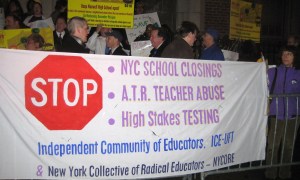 Mayor Bloomberg announced the closing of over 20 public schools. Maxwell High denounces this unfair callous attempt to privatize with charter schools. Over 250 people protested outside and then inside against the complicity of the District Superintendent. Grassroots forces are organizing locally and citywide to stop this ruthless assault on education and school-workers.