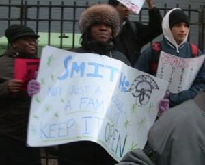 Smith H.S. rallied 100 people to fight against Bloomberg’s attempt to close this invaluable gateway for many Bronx working class students. Students led the chants and pleaded passionately to save Smith and its many vocational programs that provide lifelong careers. Many graduates have earned jobs that service our communities and have even helped build the new Bronx Yankee stadium. In this video , Danny Escobar pours his heart out in the school’s defense. Smith has nurtured him as a family and is giving him carpentry skills that are provided nowhere else.