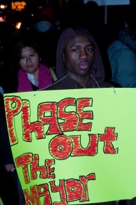Norman Siegel and students from Beach Channel and Jamaica High School spoke with protesters after they marched in front of Mayor Bloomberg’s home.