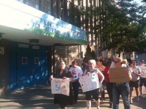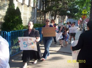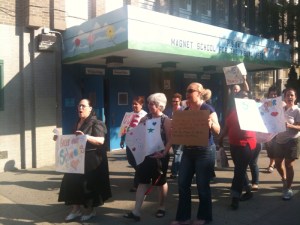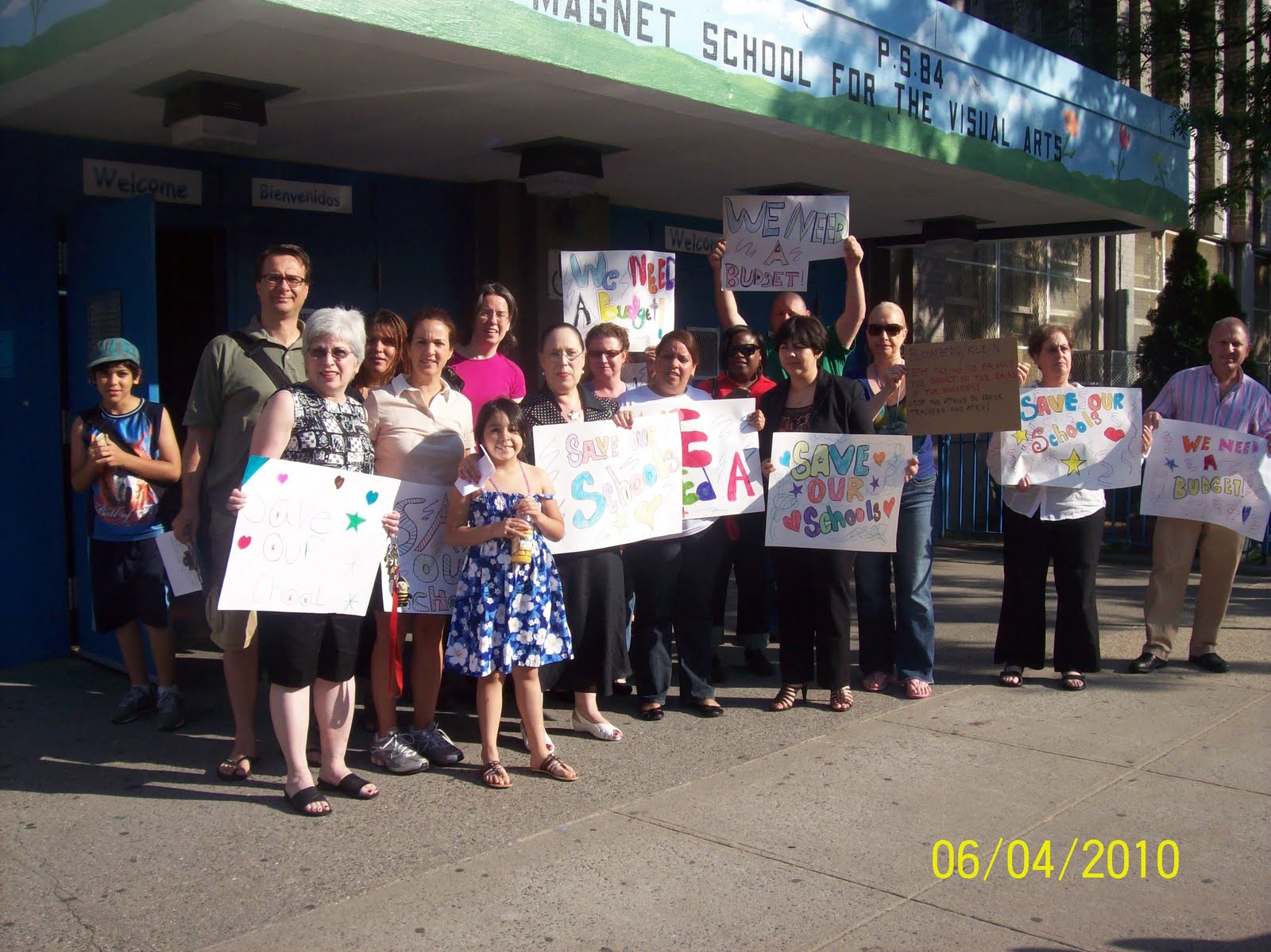 Attached are photos of this morning’s protest and petition signing by teachers/staff and parents at PS 84 Brooklyn.