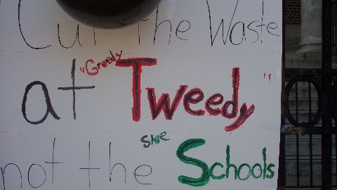 CUT THE WASTE AT (GREEDY) TWEEDY NOT THE SCHOOL