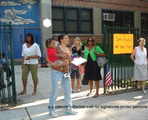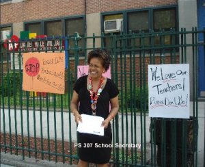 PS 307 Parents, Staff and Students came out to support the rally against the budget cuts on Friday morning. We collected over 50 signatures on the petitions.