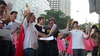 Over 100, including parents, educators, and activists engaged by-passers in dialogue as they distributed the updated GEM brochure, the Truth About Charters.